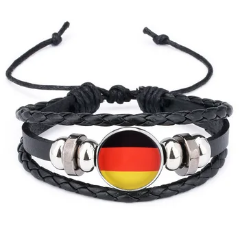 • Custom Germany Flag Braided Bracelet Leather Chain Crystal Wristband Souvenir Fashion Handmade Different Country Flag Bracelet