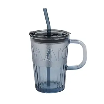 • Promotional Cheap Factory Wholesale Vintage Home Office Portable Reusable Fashionable Straw Milk Juice Coffee Handle Glass Cup