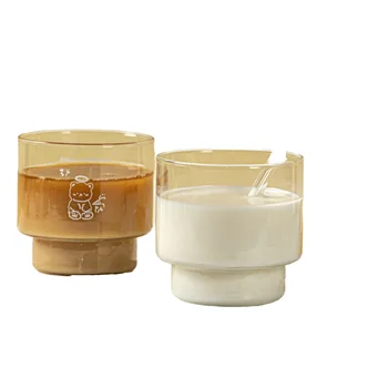 • High Quality Wholesale Personalized Custom Logo Drinkware Simple Clear Ice Tumbler Milk Water Coffee Juice Stackable Glass Cup