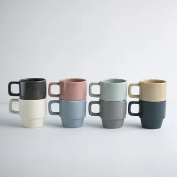 • Wholesale Promotional Cheap Colorful Mug 200ml Business Office Gift Personalized Custom Logo Coffee Water Stacking Ceramic Cup