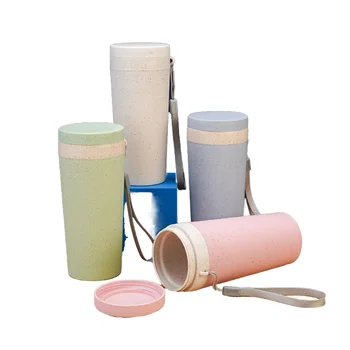 • Wholesale Promotion Hot Selling Plastic Portable Lanyard Double Height Wheat Straw Design Direct Drinking Applicable Water Cup